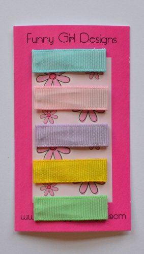 5 pastel sweet and simple hair clips. This item is crafted on 1 3/4" alligator clip with a non-slip strip or a 1 1/4" baby snap clip. This item is nicely packaged in a pink organza bag!