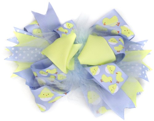 The Detailed Description of Mud Pie Spring Baby Chick Bow, Blue/Yellow, 3 1/2 inch X 6 inchFeatures