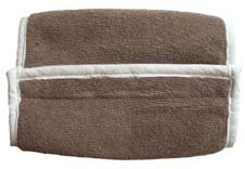 The ERGObaby sucking pad was created for your baby's teething years. This reversible pad will not only extend the life of your carrier due to less frequent washings, but will give you peace of mind knowing that your baby is teething on 100% cotton. One pair enclosed. 100% cotton terry cloth. Velcro attaches the pad around the shoulder strap of the carrier.