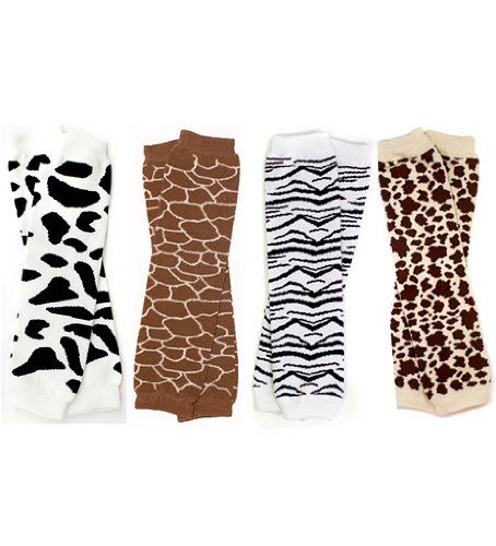 The Detailed Description of My Little Legs Animal print 4 pack of leg warmers in cow, giraffe, zebra & leopard for babies, toddler & child, One SizeFeatures