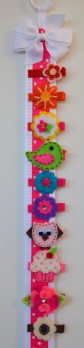 Set of 10 handmade hair clips for children. The clips will arrive displayed on a handmade bow holder for easy storage and display.