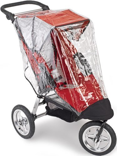 The Baby Jogger rain/wind canopy is custom designed to fit each model. It completely encloses the front and sides of the stroller while providing ventilation. It also prevents fogging for optimal visibility for the child.