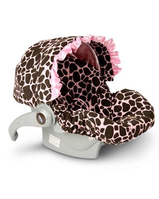 Baby Bella Maya infant car seat covers are an attractive way to update the look of your infant car seat while allowing the seat to remain clean. The infant seat cover can be removed, washed and securely placed back in the seat in a matter of minutes. The infant car seat covers offer a practical alternative that is both stylish and comfortable. Baby Bella Maya baby car seat covers utilize snaps to allow for easy access to the car seat straps. Simply wrap the cover over the seat, slide the straps through the inserts and snap closed. Canopies and matching strap pads are also included. Car seat covers are compatible with most major brands of car seats, including: Graco Snugride, Peg Perego and similar infant car seats. Infant Car Seat Cover Ginny Giraffe with Ruffle Canopy.