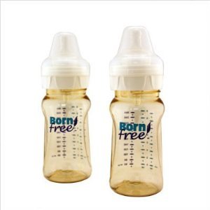 A smart way to feed your precious one, this twin pack of BornFree 9-ounce wide-neck bottles is free of the potentially harmful chemical Bisphenol-A. Now you can feed your baby safely, comfortably, and worry free. BornFree is made of Polyamide, a special plastic that is Bisphenol-A free and more resistant to detergents. This bottle also features a revolutionary venting system, which helps reduce colic symptoms and the risk of middle ear infections. The unique inner valve prevents side leaks and allows you shake freely when mixing. Additionally, each bottle comes with a soft, gentle stage-one nipple that prevents hard suckling and does not collapse. This two-pack is dishwasher safe (top rack) and comes with a high-grade stage-one nipple and travel cover.